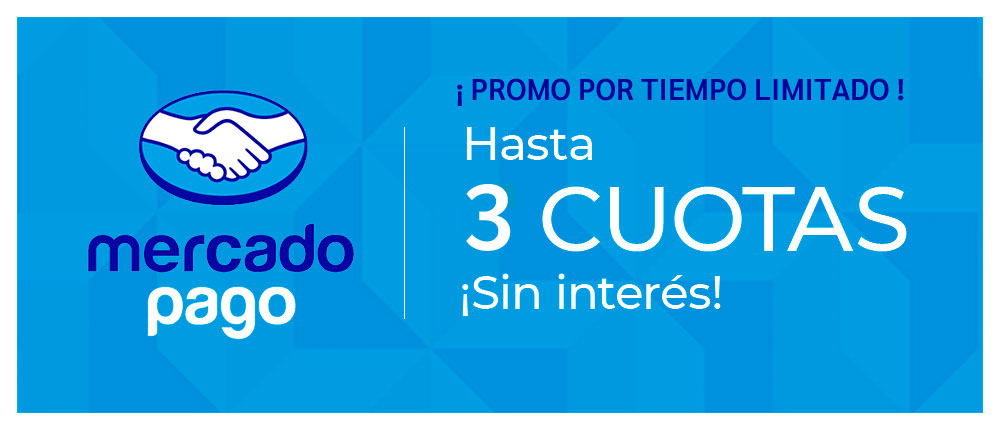Aceptamos TODAS LAS TARJETAS a través de Mercado Pago, el sistema de pago más confiable de Argentina. Aprovechá nuestras 3 cuotas sin interés y hacé tu compra de forma rápida, cómoda y segura.