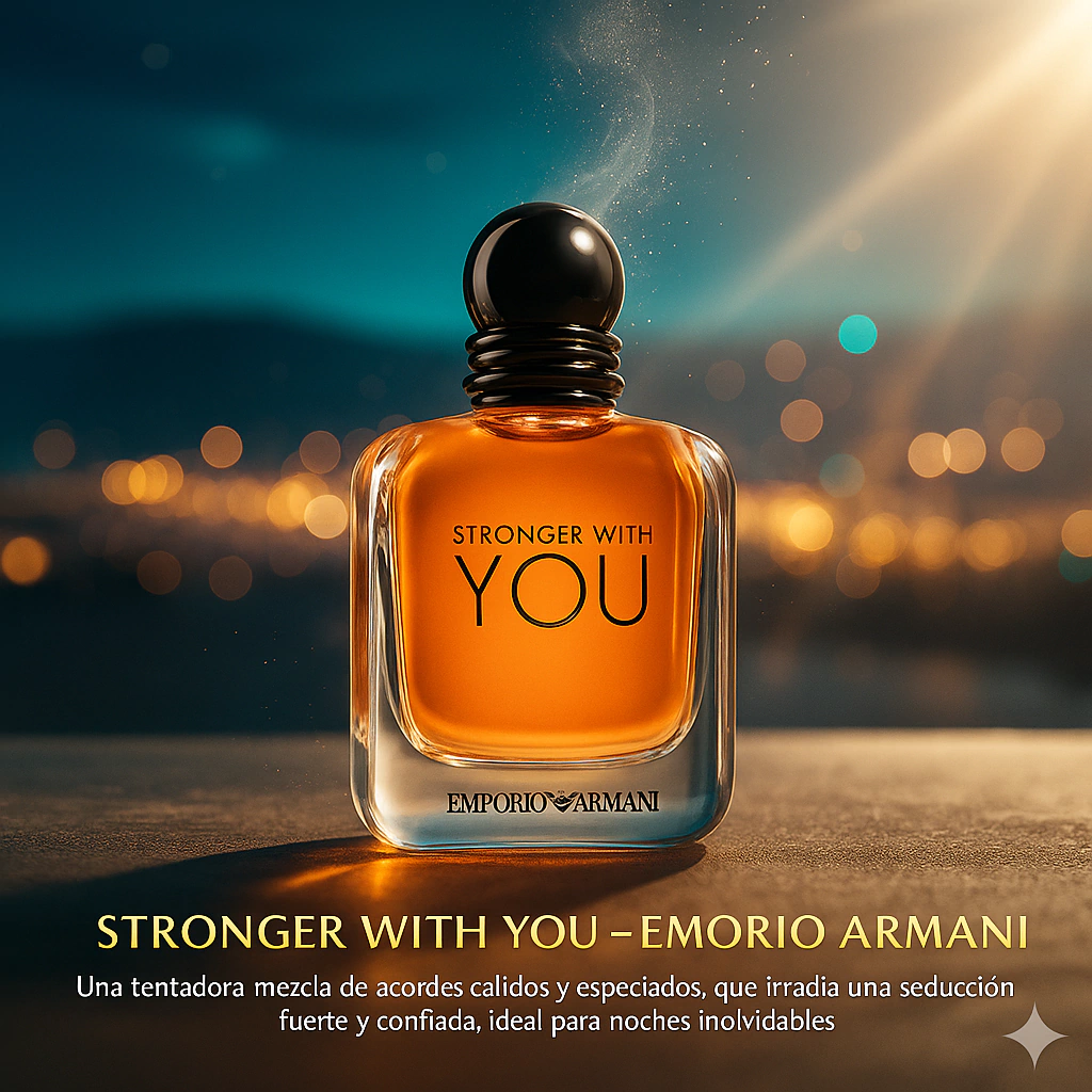 Giorgio Armani Stronger With You (80 ml): Un balance adictivo de castaña glaseada, vainilla y especias, con un fondo cálido de maderas. Diseñado para hombres carismáticos y modernos que buscan un aroma intenso, seductor y duradero.